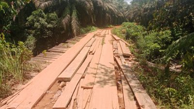 Kalimantan Barat, MWT – Kondisi jembatan kayu yang menghubungkan Desa Pangkalan Telok dan Desa Tanjung…