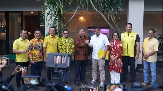 Ijeck menemani Airlangga saat memberikan surat tugas bacalon Gubsu Partai Golkar ke Bobby Nasution (Foto: Dok. Instagram @bobbynst)