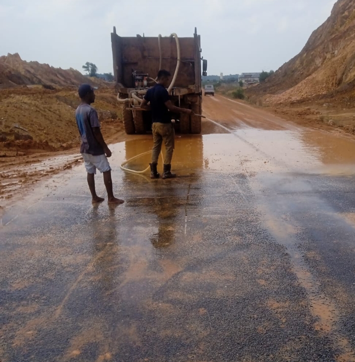 Akibat tumpahan tanah dari truk pengangkut material, ruas jalan menjadi licin dan kotor hingga menyebabkan sejumlah pengendara terjatuh. Situasi ini semakin mengkhawatirkan karena jalan tersebut setiap hari dilalui para pelajar.