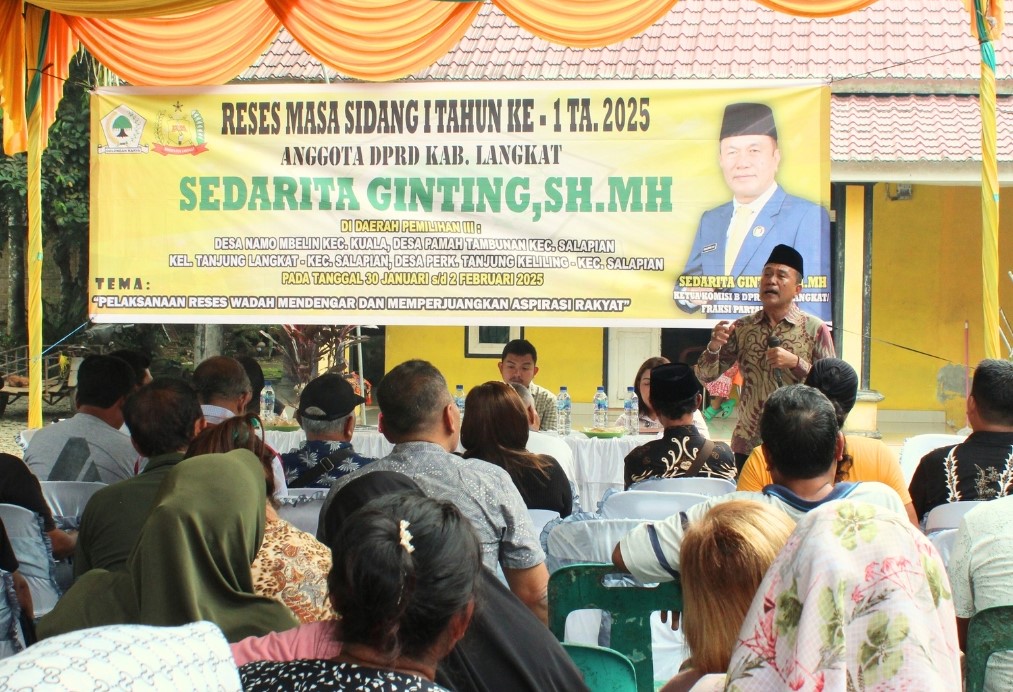 Langkat, MWT – Reses DPRD Kabupaten Langkat hari ketiga, Sabtu (01/02/2025), anggota DPRD Langkat Sedarita Ginting menggelarnya di Kelurahan Tanjung Langkat, Kecamatan Salapian. Dalam pertemuan tersebut, hadir Lurah Tanjung Langkat, Kepala Puskesmas Kelurahan Tanjung Langkat dan warga setempat yang siap untuk menyampaikan berbagai aspirasi dan permasalahan yang mereka hadapi.
