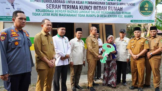Pj Bupati Langkat H. M. Faisal Hasrimy, AP., M. AP menyerahkan kunci bedah rumah Baznas sebanyak 2 rumah kepada bapak Irianto dan Bapak Wandik bertempat di Dusun Kedondong tengah dan Kedondong sejati Desa Jentera Stabat Kecamatan Wampu, Selasa (2/4/2024) sore.