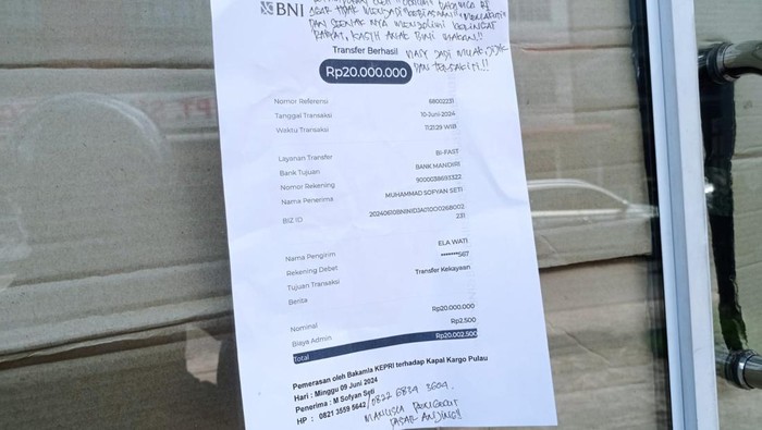 Pada selebaran yang disebar di beberapa ATM di Tanjungpinang itu tertulis bahwa bukti transfer itu merupakan pemerasan yang diduga dilakukan oleh oknum Bakamla. Oknum anggota Bakamla itu diduga menakuti dan menzalimi.