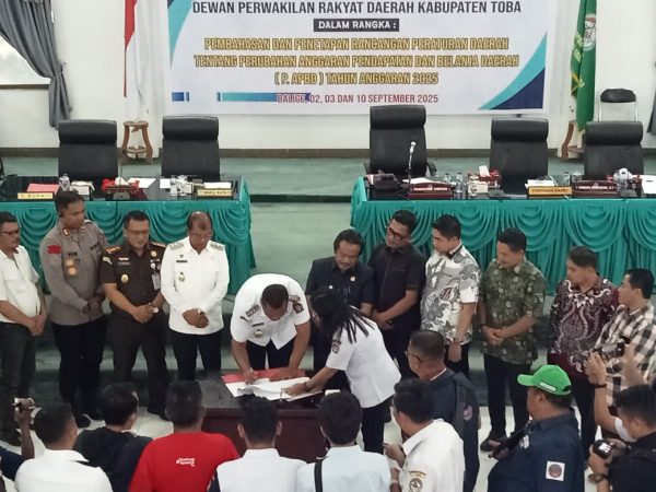 Toba, MWT : Ranperda Tentang Perubahan Anggaran Pendapatan dan Belanja Daerah (P-APBD) Kabupaten Toba, Sumatera Utara Tahun Anggaran (TA) 2025. Bupati Toba Effendi S.P Napitupulu bersama DPRD Toba Tandatangani kesepakatan perubahan TA 2025 sebesar RP 20. 479.915.200,00.