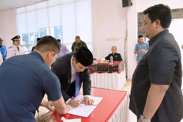 Samosir, MWT – Bupati Samosir Vandiko T. Gultom mengambil sumpah dan melantik Marudut Sitinjak menjadi Sekretaris Daerah, di Aula Kantor Bupati Samosir kemarin. Marudut Sitinjak sebelumnya menjabat Inspektur . Ia dilantik berdasarkan keputusan Bupati Samosir Nomor 89 Tahun 2024 tentang pengangkatan PNS dalam Jabatan Pimpinan Tinggi Pratama. Selain Marudut, Tommy Naibaho menduduki jabatan ataf ahli bidang hukum dan politik.
