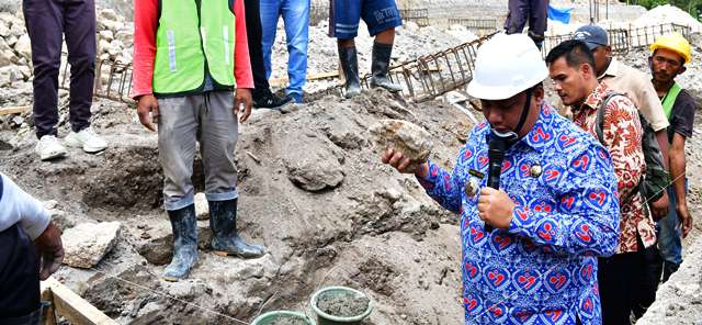 Pembangunan Puskesmas Buhit di Desa Pardomuan I, Kecamatan Pangururan dimulai, dengan peletakan batu pertama oleh Bupati Samosir Vandiko Timotius Gultom, ST, Kamis (1/8/2024).