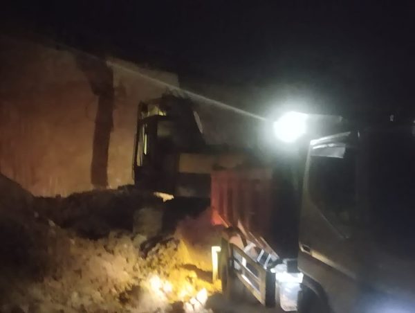 Pantauan lapangan menunjukkan sebuah ekskavator bekerja tanpa henti mengeruk bukit dan memuat material ke dump truck yang lalu-lalang malam hari. Aktivitas pematangan lahan ini disebut-sebut namun hingga kini belum ada penertiban atau pengawasan ketat dari Aparat Penegak Hukum (APH).