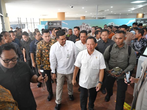Medan, MWT – Gubernur Sumatera Utara (Sumut) Muhammad Bobby Afif Nasution mendampingi Menteri Perumahan dan Kawasan Permukiman (PKP) Maruarar Sirait serta Menteri Dalam Negeri (Mendagri) Tito Karnavian meninjau Mall Pelayanan Publik (MPP) Kota Medan di Jalan Iskandar Muda, Jumat (10/10/2025).