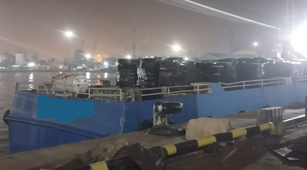 Kapal berlabel huruf “T” terlihat merapat di Pelabuhan Batu Ampar membawa puluhan karung plastik hitam yang diduga berisi barang balpres. Informasi di lokasi barang itu dibawa dari Singapura. Tak lama, lima unit lori boks datang dan langsung memuat karung-karung tersebut tanpa terlihat adanya pengawasan dari aparat Bea Cukai.