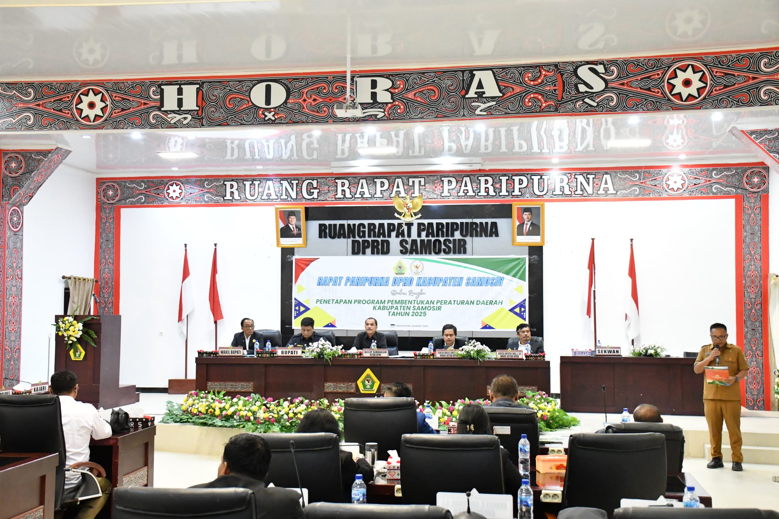 Bupati Samosir Vandiko T. Gultom mengatakan pembahasan dan penetapan Propem Perda tahun 2025 merupakan komitmen untuk membangun dan membentuk infrastruktur hukum penyelenggaraan pemerintahan dan pembangunan dengan berbagai regulasi peraturan daerah yang bermuara pada perwujudan cita-cita penyelenggaraan pemerintah daerah yaitu efektifitas pelaksanaan pemerintahan, percepatan pembangunan untuk kesejahteraan masyarakat.