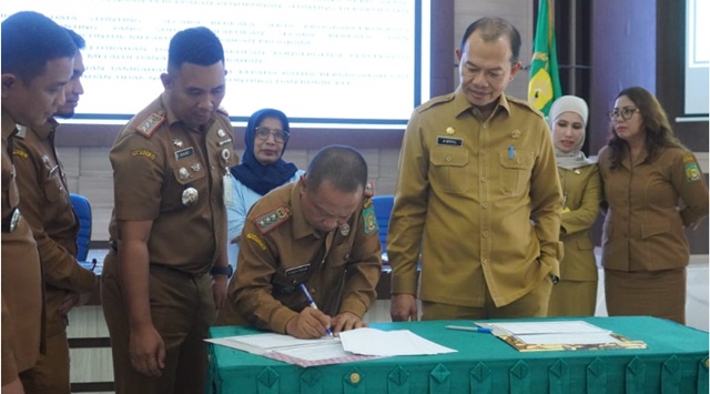 Stabat, MWT – Pj. Bupati Langkat, H. M. Faisal Hasrimy, AP., M.AP., melalui Sekretaris Daerah (Sekda) H. Amril, S.Sos., M.AP., menyambut tim monitoring dan evaluasi (Monev) penanganan stunting di Kabupaten Langkat. Kegiatan ini merupakan bagian dari implementasi tindak lanjut intervensi serentak penanganan stunting yang dilaksanakan pada Juni 2024 se-Sumatera Utara, dan berlangsung di Ruang Pola Bawah Kantor Bupati Langkat pada Senin pagi (5/08/2024).