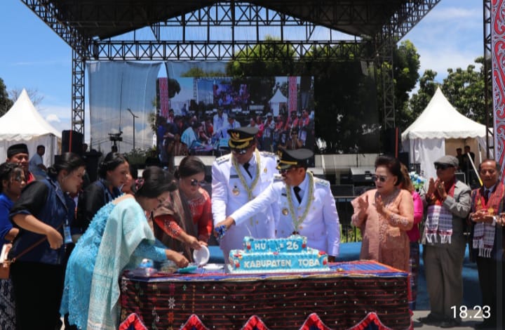 Sebelumnya, acara HUT yang diawali ibadah dan ditandai pemotongan Kue dan pelepasan Ballon oleh Bupati Toba Effendi SP Napitupulu bersama nyonya serta Wabup Toba Drs. Audi Murphy Sitorus diikuti Forkopimda dan pemuka agama bersama undangan dari para mantan Bupati Toba berjalan aman dan terlaksana dengan baik.