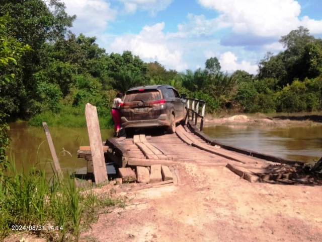 Jembatan di Desa Rangkung Kecamatan Marau Kabupaten Ketapang Kalbar perlu perhatian pemerintah karena dapat mengancam keselamatan pengendara. Awak Media Warta Tipikor yang melintas melihat mobil terperosok di jembatan tersebut.