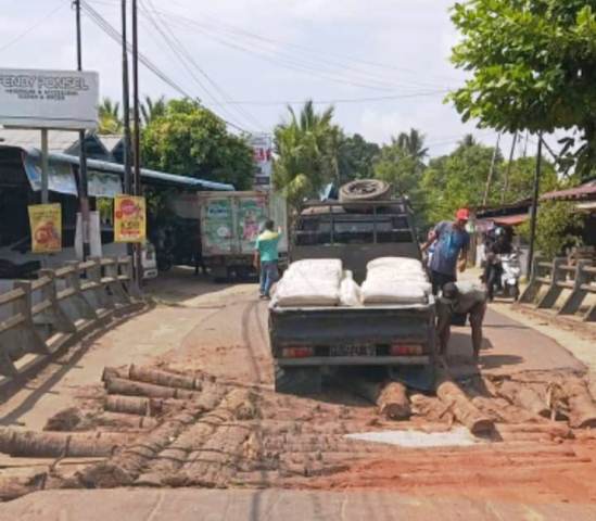 Aslinya, konstruksi jembatan yang ada di Desa Sungai Besar tersebut menggunakan material semen,pasir dan besi. Namun setahun lalu kondisinya rusak. Warga merasa ada tindakan pembiaran sehingga mereka berinisiatif mencari solusi. Jembatan Desa Sungai Nanjung Kecamatan Matan Hilir Selatan ini ditambal dengan pohon kelapa dan disulam memakai kawat seadanya. Jalan berstatus perawatan provinsi ini tidak kondusif dengan materia tersebut. Volumen kendaraan yang melintas relatif cukup banyak, maka hancurlah pohon kelapa tadi. Korbannya, satu unit pick-up terperosok saat membawa material bangunan . Pemandangan tidak biasa ini mengundang komentar warga. Umumnya, kepada media ini menyatakan, pemerintah secara berjenjang mulai dari desa, kecamatan, kabupaten sampai provinsi terkesan tidak berpihak kepada fasilitas umum, khususnya jalan. (Natalius)