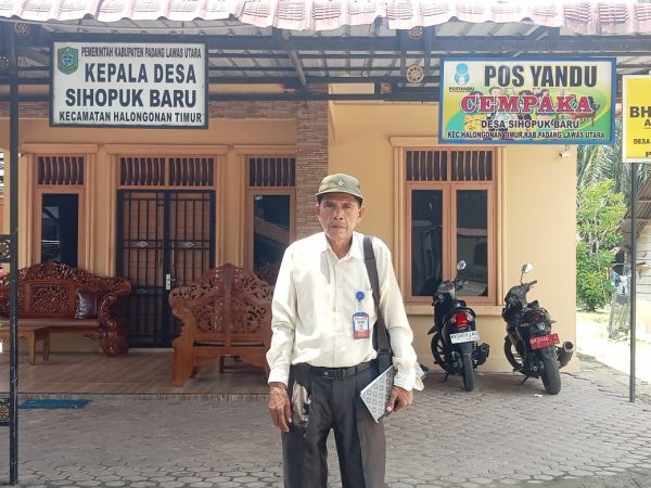 Kabiro MWT Paluta, Erri Pada Siregar, SE, saat berkunjung ke kantor Desa Sihopuk Baru, Kecamatan Halongonan Timur, Kabupaten Padang Lawas Utara.