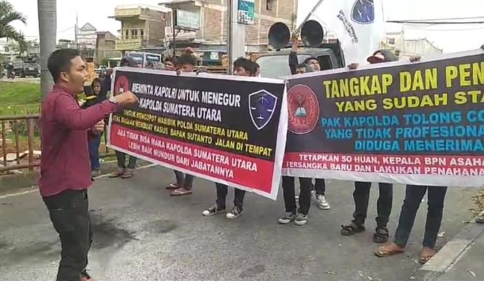 Selain itu pengunjukrasa mendesak Polda Sumut menetapkan SH (suami JSE), Eks Kepala Kantor BPN Asahan FH, Kepala Desa Asahan Mati ZS menjadi tersangka karena telah menyalahgunakan jabatan dan memalsukan dokumen negara.