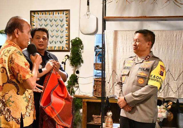 Samosir, MWT – Kapolda Sumut Irjen Pol Agung Setya I.E dalam kunjungan kerja di Polres Samosir disambut Bupati Samosir Vandiko T. Gultom dan Wabup Martua Sitanggang dengan pemberian ulos di Kawasan WaterFront Pangururan, Jumat (19/04/2024).