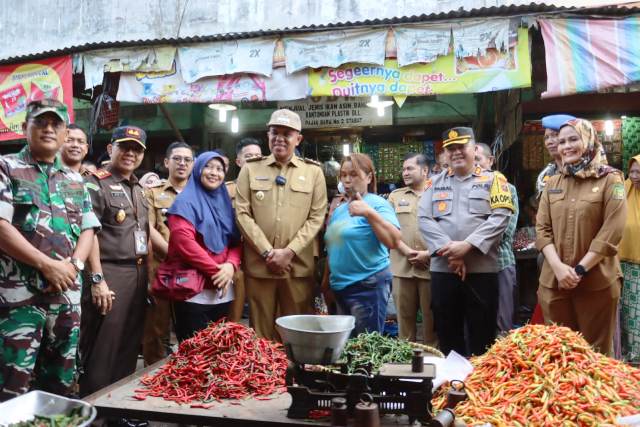 Tampak bergabung, Kajari Langkat Mei Abeto Harahap, SH, MH, Asisten Adm Ekbangsos H. Sukhyar Mulyamin, S.Sos, M.Si , Kabag Perekonomian dan SDA Indri Nugraheni, SE, MM, Akt, Kadis Pertanian dan Ketahanan Pangan Hendrik Tarigan, S.Pt, M, MA, Kanit IV Ekonomi Sat Reskrim Polres Langkat Iid Ali Al Asghor, S. Tr. K dalam rangka memastikan harga dan ketersediaan bahan pokok di pasar menjelang bulan Ramadan.