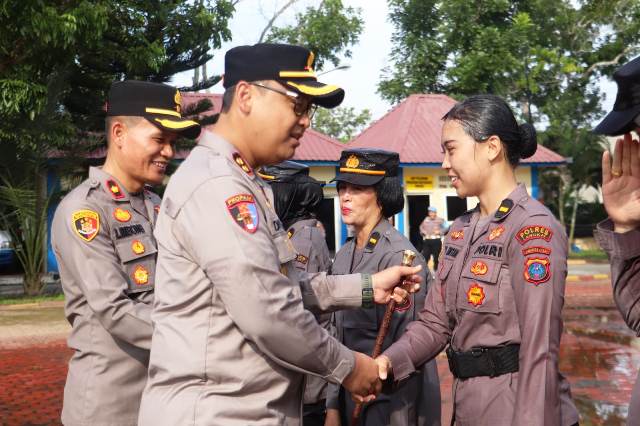 Diikuti oleh Wakapolres Kompol Henman Limbong, S.P., S.I.K., serta jajaran pejabat Polres lainnya, termasuk para Kabag, Kasat, Kapolsek, Perwira, Bintara, dan ASN.
