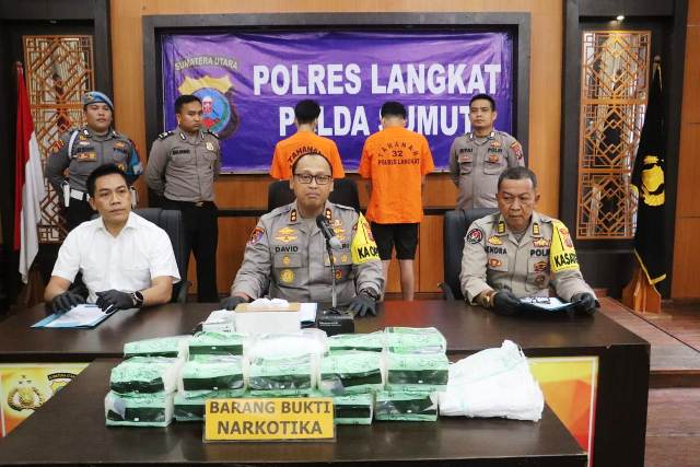 Kapolres Langkat AKBP David Triyo Prasojo, mengatakan, dari total sekitar 20 Kg berhasil mengamankan pelaku 2 orang laki-laki yang merupakan pelaku kejahatan narkotika.,”kata David Triyo.
