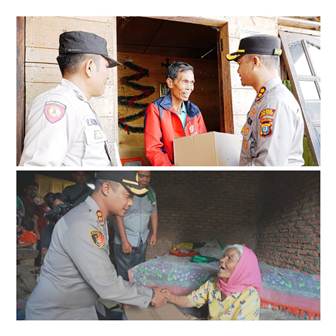 Penyerahan bingkisan kepada warga dari Polres.