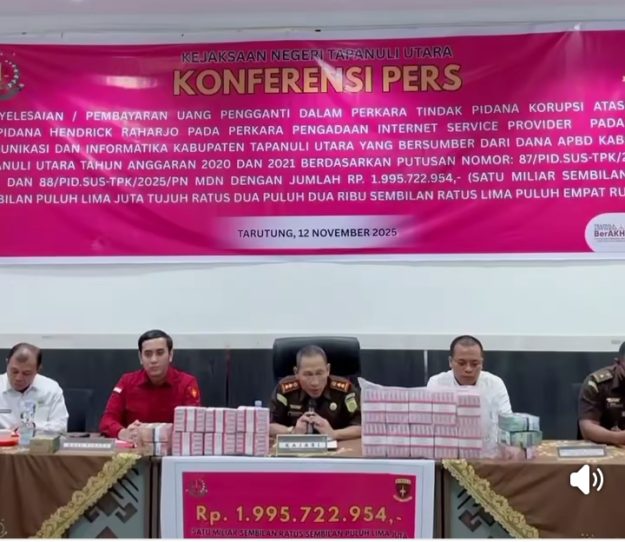 Taput, MWT — Kejaksaan Negeri Tapanuli Utara (Kejari Taput) menyerahkan uang pengganti hasil tindak pidana korupsi kepada Pemerintah Kabupaten Tapanuli Utara. Penyerahan ini terkait perkara korupsi pengadaan Internet Service Provider (ISP) pada Dinas Kominfo Kabupaten Tapanuli Utara yang menggunakan dana APBD tahun anggaran 2020 dan 2021.