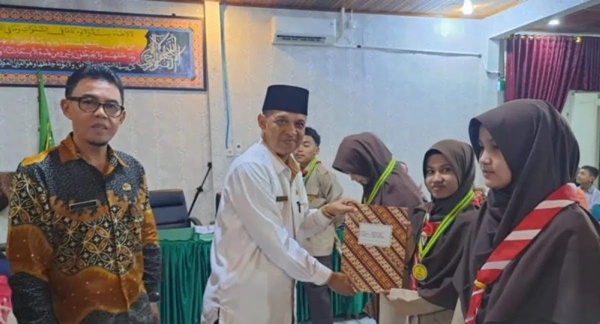 Salah satu momen puncak dalam acara tersebut adalah pemberian penghargaan kepada pemenang secara langsung oleh Kepala Kantor Kemenag Kota Solok Mustafa. ( Dioni )