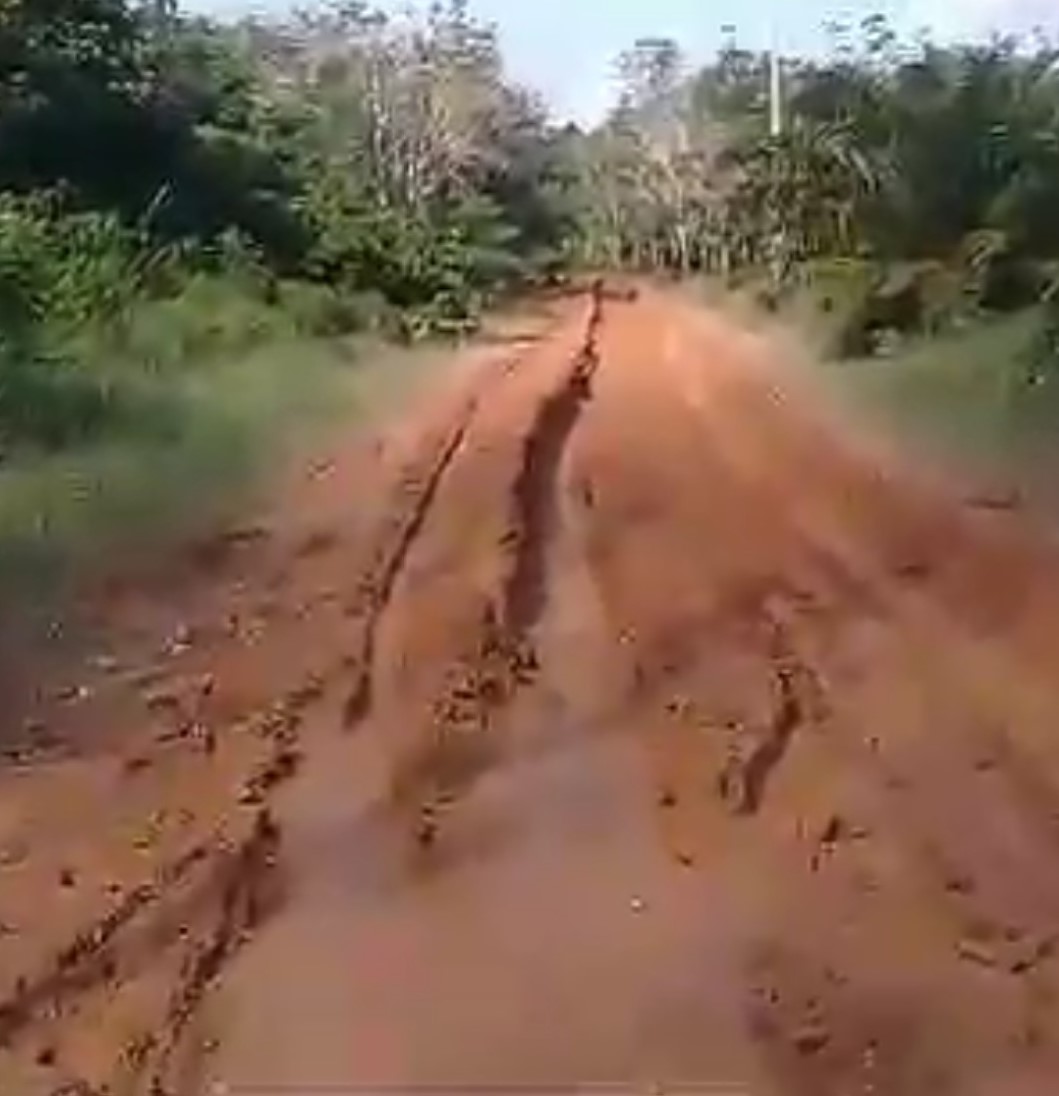 Sekarang ruas jalan terbelah bagaikan parit. Padahal tadinya, badan jalan yang dilintasi truk seakan irigasi.