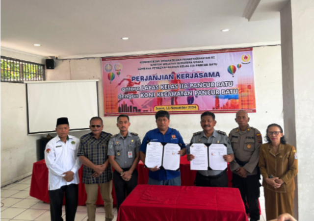 Pancur Batu, MWT – Untuk menumbuhkan kesadaran para warga binaan pemasyarakatan, Lapas Kelas IIA Pancur Batu melakukan kerja sama dengan KONI Kecamatan Pancur Batu.