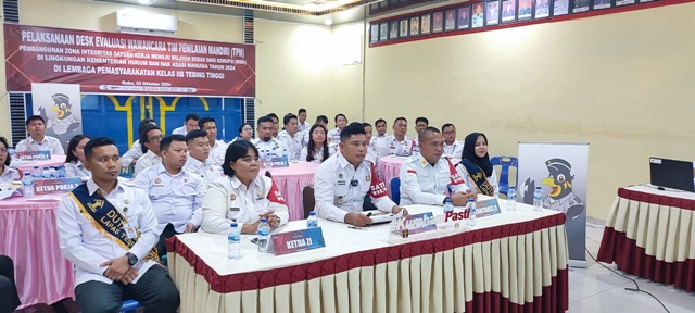 Tebing Tinggi, MWT -Lembaga Pemasyarakatan (Lapas) Kelas IIB Tebing Tinggi melalui Tim Zona Integritas (ZI) telah sukses dan menyelesaikan desk evaluasi wawancara pembangunan Zona Integritas menuju Wilayah Bebas dari Korupsi (WBK) yang dilaksanakan oleh Tim Penilai Mandiri (TPM) Kemenkumham yang digelar secara virtual di Aula Sasana Tama Lapas. Rabu, (02/10/2024).