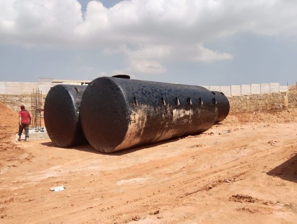 Dua tangki siap ditanam di lokasi SPBU Torbion Kelurahan Kabil Kecamatan Nongsa Batam.