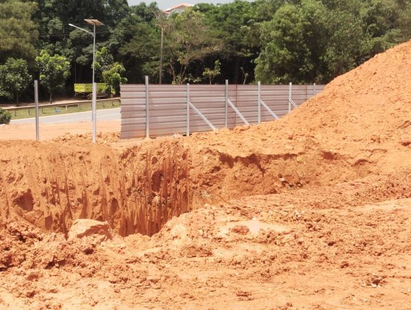 Lubang yang digali pada pembangunan SPBU Torbion untuk posisi tangki BBM.