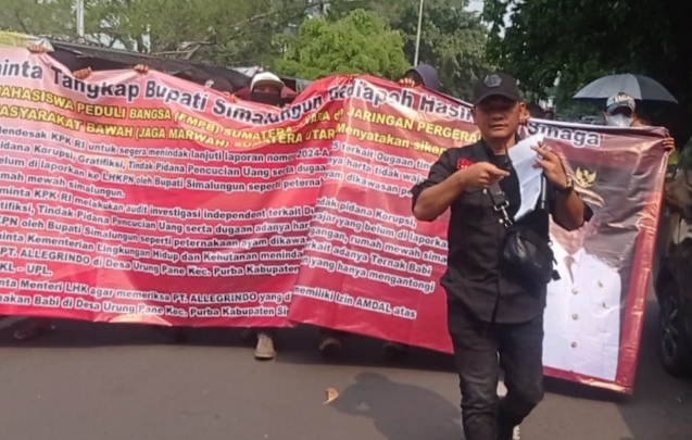Massa aksi yang dipimpin Ketua Umum Jaga Marwah Edison Tamba mendesak KPK menangkap Bupati Simalungun Radiapoh Hasiholan Sinaga terkait dugaan korupsi sejumlah proyek di Pemkab Simalungun dan harta tak wajar milik bupati yang tidak masuk dalam Laporan Harta Kekayaan Pejabat Negara (LHKPN).