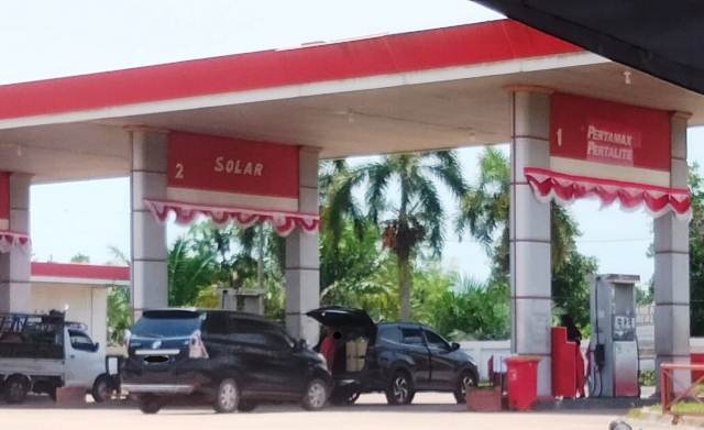 Pembicaraan hangat terjadi di kalangan pengendara yang ada di SPBU. Dugaan demi dugaan muncul terkait kemudahan pengisian BBM menggunakan jerigen alias kin di SPBU satu ini. (Jajir)