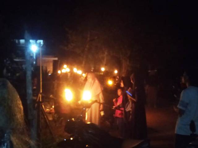 Masyarakat sangat antusias mengikuti pawai obor sambil berkeliling baik dari kalangan orang tua remaja dan anak – anak.