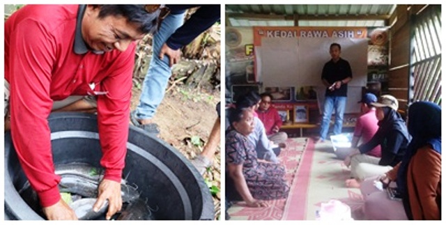 Indra pelatih pembenihan ikan lele dan Mohammad Zazuli Spesialis Livelihood Save The Children (STC).