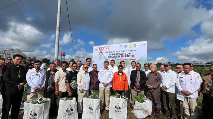 Dalam rangkaian kegiatan tersebut, Hashim Djojohadikusumo juga menyerahkan secara simbolis bibit pohon aren kepada perwakilan lima kepala desa yang terdampak bencana alam di Kabupaten Tapanuli Utara.