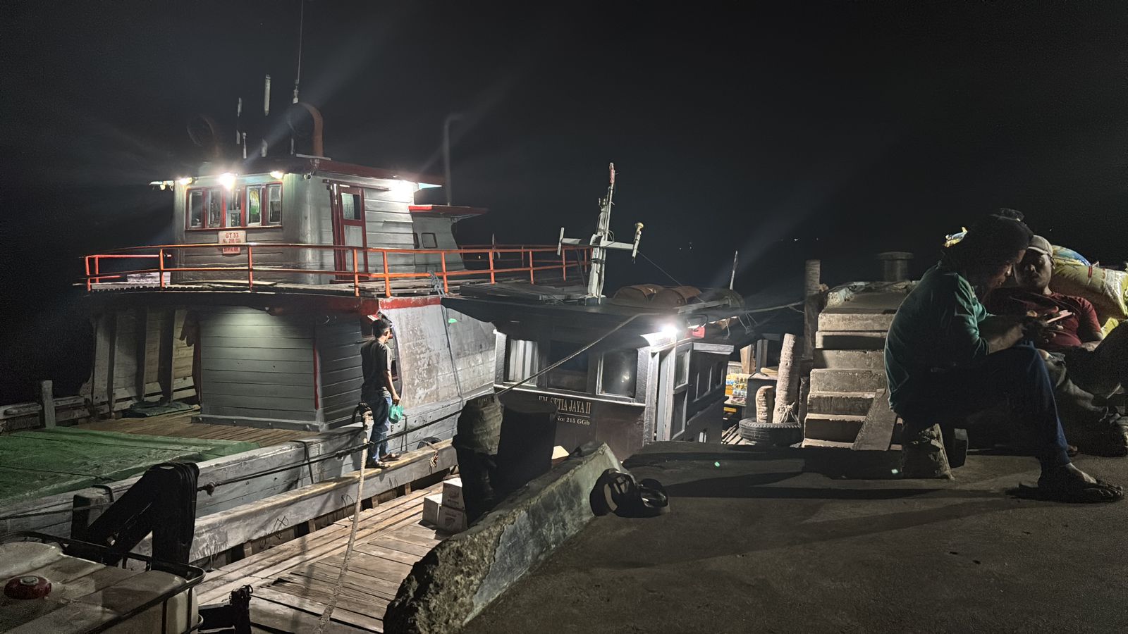 Pantauan awak media ini, Rabu malam (18/3/2026)  tampak aktivitas kapal kayu KM SJ di Pelabuhan Sei Tenam Daik Lingga. Kru kapal ini mengaku berangkat dari Pelabuhan Aku, Jembatan 6 Barelang Batam.