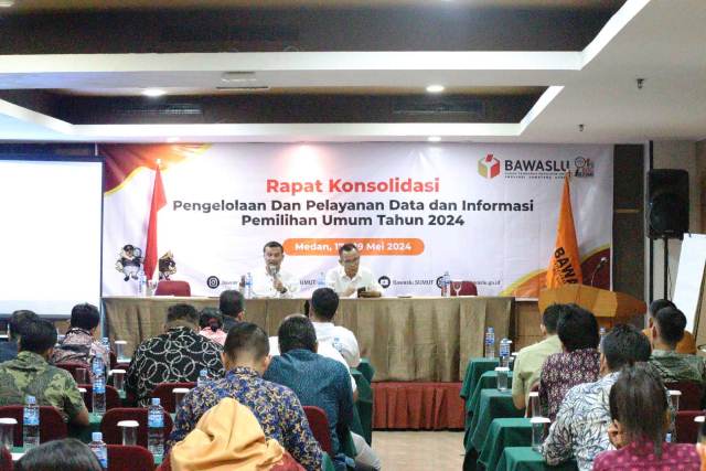 Medan, MWT – Tahapan Rekapitulasi Penghitungan Perolehan Suara dan Penetapan Hasil Pemilu Tahun 2024 telah berakhir. Bawaslu Sumut melaksanakan Rapat Konsolidasi Pengelolaan dan Pelayanan Data dan Informasi Pemilihan Umum Tahun 2024 yang dilaksanakan di Hotel Grand Antares, Jumat (17/05/2024).