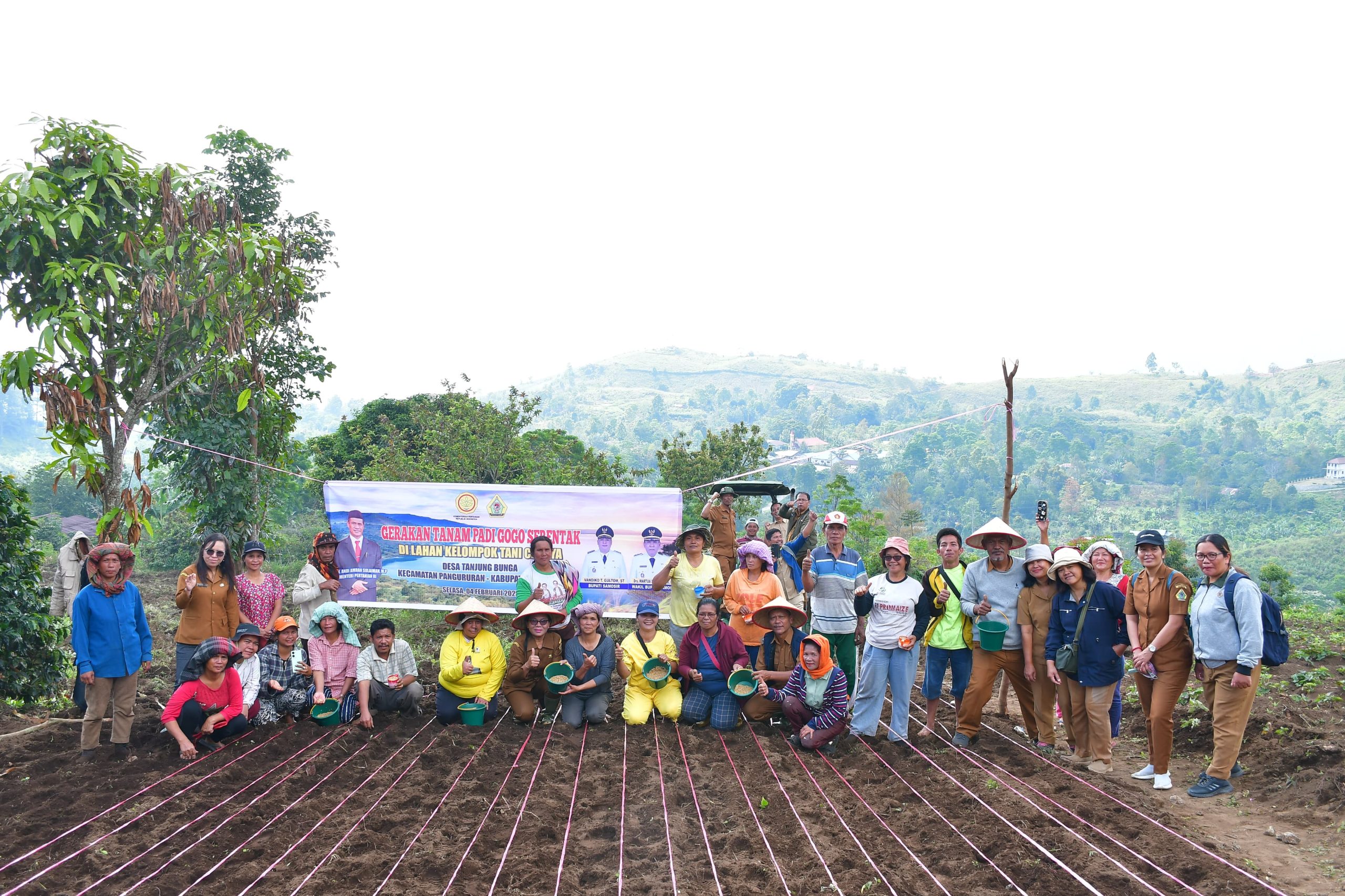 Samosir, MWT – Gerakan tanam serentak padi gogo adalah sebuah inisiatif untuk meningkatkan produksi pangan dan menjaga ketahanan pangan di Indonesia. Gerakan ini untuk meningkatkan produksi padi gogo, yang dapat ditanam di lahan kering dan memiliki potensi untuk meningkatkan ketahanan pangan. Untuk tahun 2025, gerakan ini juga dilakukan Pemerintah Kabupaten Samosir melalui Dinas Ketapang dan Pertanian dengan penanaman 1 Ha padi Gogo di Sitaotao- Dusun 3 Desa Tanjung Bunga-Pangururan, Selasa (04/02/2025).