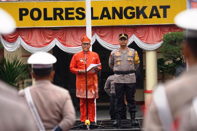 Apel gelar pasukan ini dihadiri oleh berbagai pejabat daerah dan unsur Forkopimda, termasuk Kadis Kominfo Wahyudiharto, S.STP, M.Si., Kasat Pol PP Damaeka Putra Singarimbun, SSTP, Kadis Kesehatan dr. Juliana, MM, Kadis Pemuda dan Olahraga Ngaturken PA, M.Pd, serta Kadis Perhubungan Arie Ramadhany, S.IP, M.SP. Turut hadir pula perwakilan dari TNI, Polres Langkat, dan berbagai elemen lainnya.