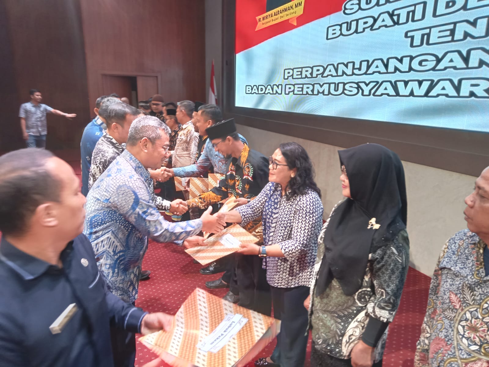Penjabat Bupati Deliserdang, Sumatera Utara, Ir Wiriya Alrahman MM menyerahkan Surat Keputusan perpanjangan masa jabatan kepada 2.617 Anggota Badan Permusyawaratan Desa (BPD).