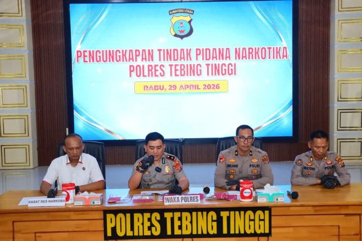 Tebing Tinggi, MWT – Polres Tebing Tinggi memaparkan hasil pengungkapan kasus narkotika sejak bulan Januari hingga April 2026. Kegiatan tersebut berlangsung di Aula Kamtibmas Mapolres Tebing Tinggi, Rabu (29/4/2026).
