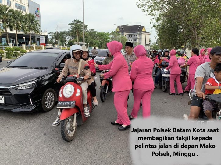 Sekitar pukul 17.00 WIB pembagian 100 paket takjil kepada masyarakat pengguna jalan di depan Mako Polsek Batam Kota. Personel Polsek Batam Kota bersama Bhayangkari turun ke jalan membagikan takjil kepada para pengendara dan warga yang melintas sebagai bentuk kepedulian kepada masyarakat yang sedang menjalankan ibadah puasa.