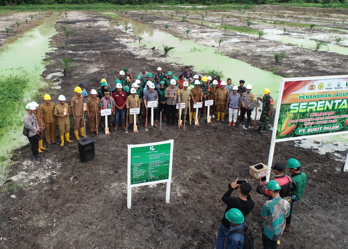 Dalam penanaman jagung terlihat hadir jajaran PT.Bukit Palem, Forkopimcam Kecamatan Singkup, TNI, Polri, DAD,kepala desa besarta pengurus koperasi setempat.