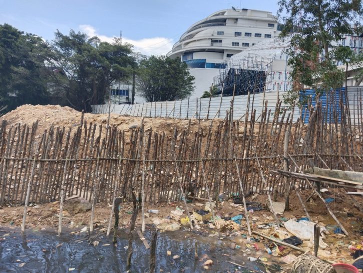 Kawasan pekerjaan PT OKP memunculkan dugaan pelanggaran hukum. Sebuah area di bibir pantai telah dipagari menggunakan kayu bakau (mangrove), lalu ditimbun tanah secara bertahap untuk memperluas lahan pribadi tanpa izin resmi.
