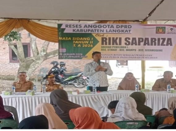 Langkat, MWT – Anggota DPRD Langkat Riki Sapariza melaksanakan reses Masa Persidangan I Tahun II 2026 di Desa Pantai Gemi, Kecamatan Stabat, Senin (26/1/2026). Kegiatan ini menjadi wadah penyerapan aspirasi masyarakat secara langsung dan terbuka.