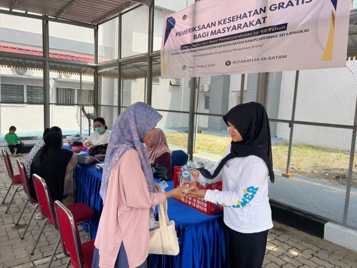 Batam, MWT  – Dalam rangka memperingati Hari Bakti Pemasyarakatan (HBP) ke-62, Rumah Tahanan Negara Kelas IIA Batam menggelar kegiatan pemeriksaan kesehatan gratis bagi parapengunjung. Kegiatan ini merupakan hasil kerja sama dengan Dinas Kesehatan serta Puskesmas Sei Langkai dan dilaksanakan di halaman Kantor Rutan Batam, Selasa (14/04/2026)