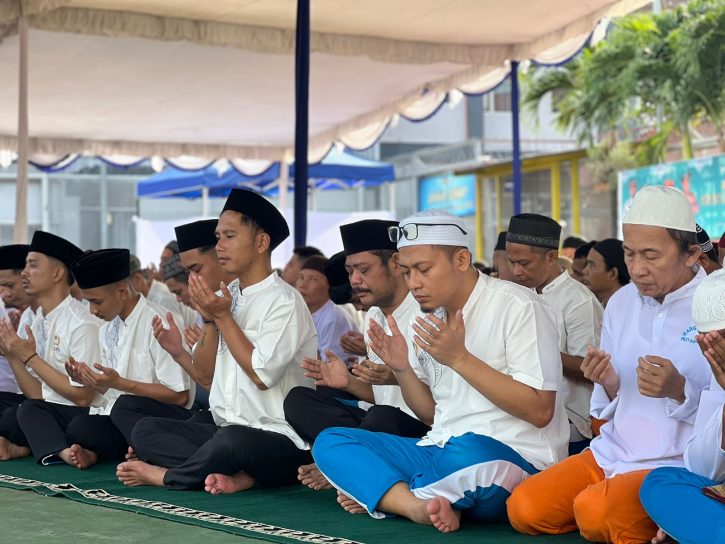Kegiatan Sholat Idul Fitri dilaksanakan di lapangan dalam Rutan Batam dan diikuti oleh seluruh warga binaan beragama Islam serta jajaran petugas. Sejak pagi hari, suasana religius telah terasa dengan gema takbir yang menggugah hati, menghadirkan nuansa Idul Fitri yang penuh makna meski jauh dari keluarga.