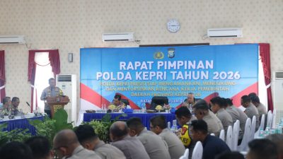 Batam, MWT – Polda Kepri menggelar Rapat Pimpinan (Rapim) Tahun 2026 di Gedung Lancang Kuning…