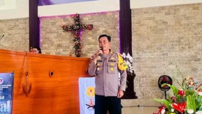 Bitung, MWT –Kapolsek Maesa AKP Ferry F. Padama, SH bersama keluarga menghadiri Ibadah Natal Kelahiran…